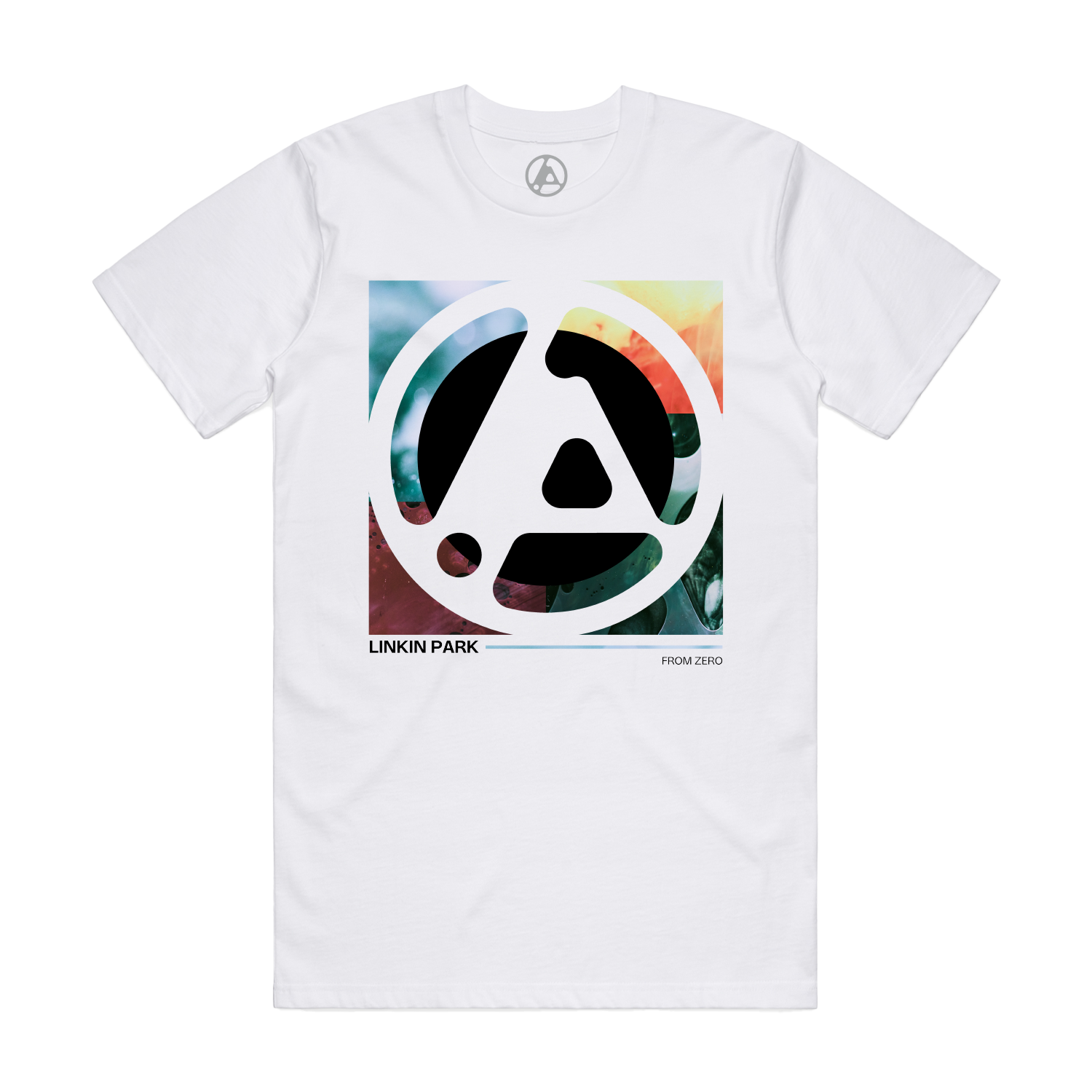 Unisex white tee featuring From Zero art on front. 100% cotton.